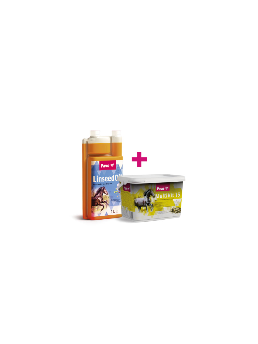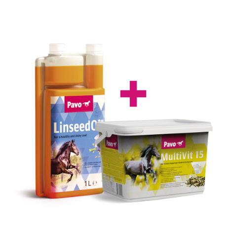 De combinatie van MultiVit 15 en Lijnzaadolie is een ideale combinatie om je paard door het verharingsproces heen te helpen.